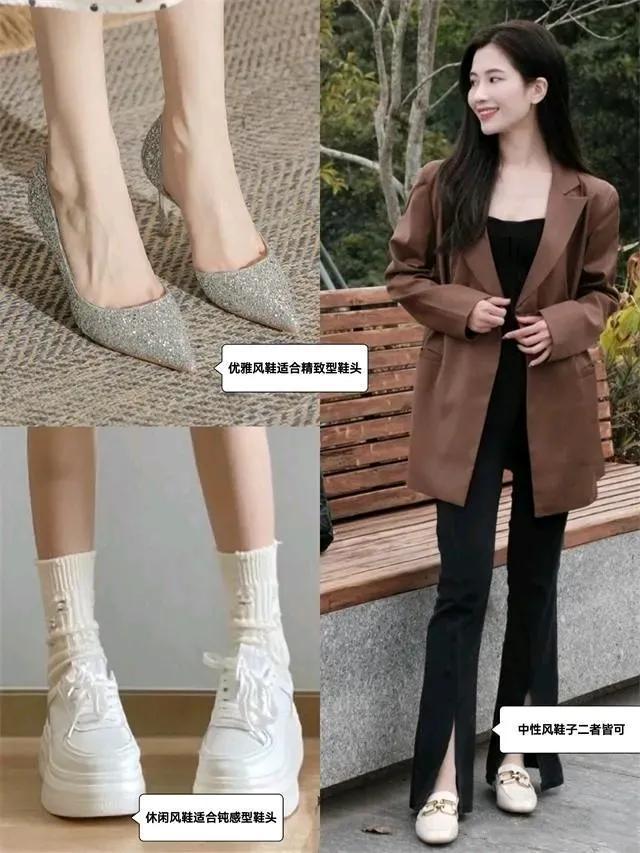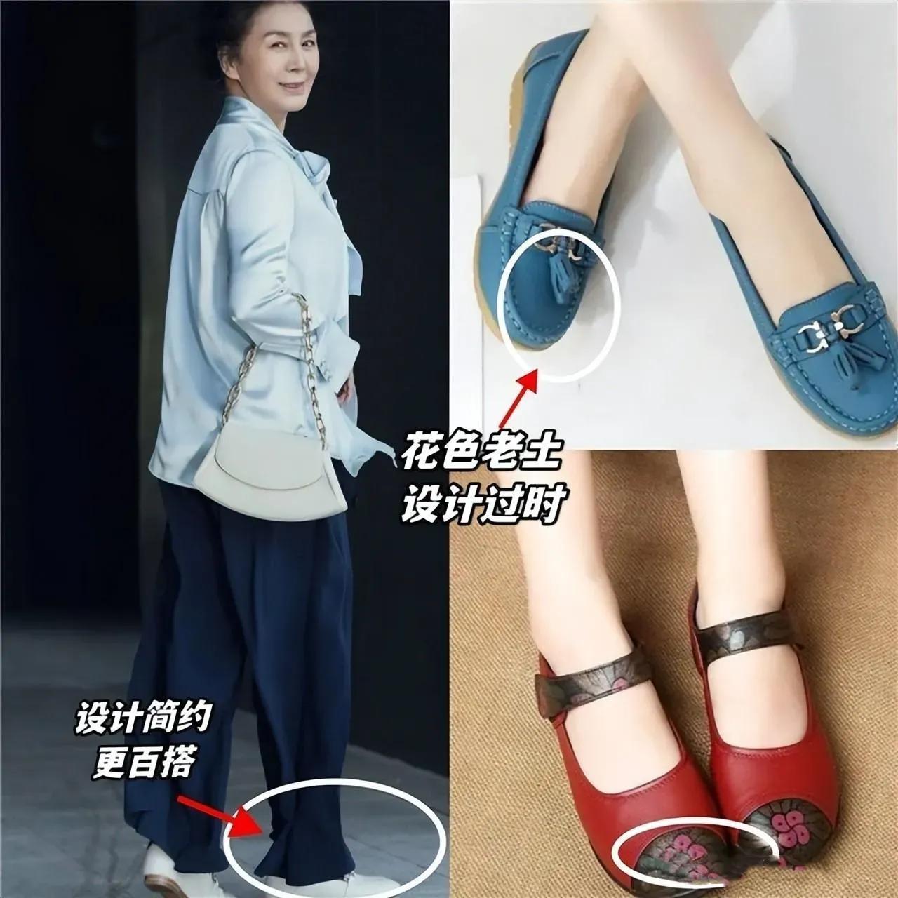 到了中年这个阶段,更不要去选择那种豆豆鞋,或者是说色彩很鲜艳的款式,鞋头很宽松的版型,穿在脚上格格不入。