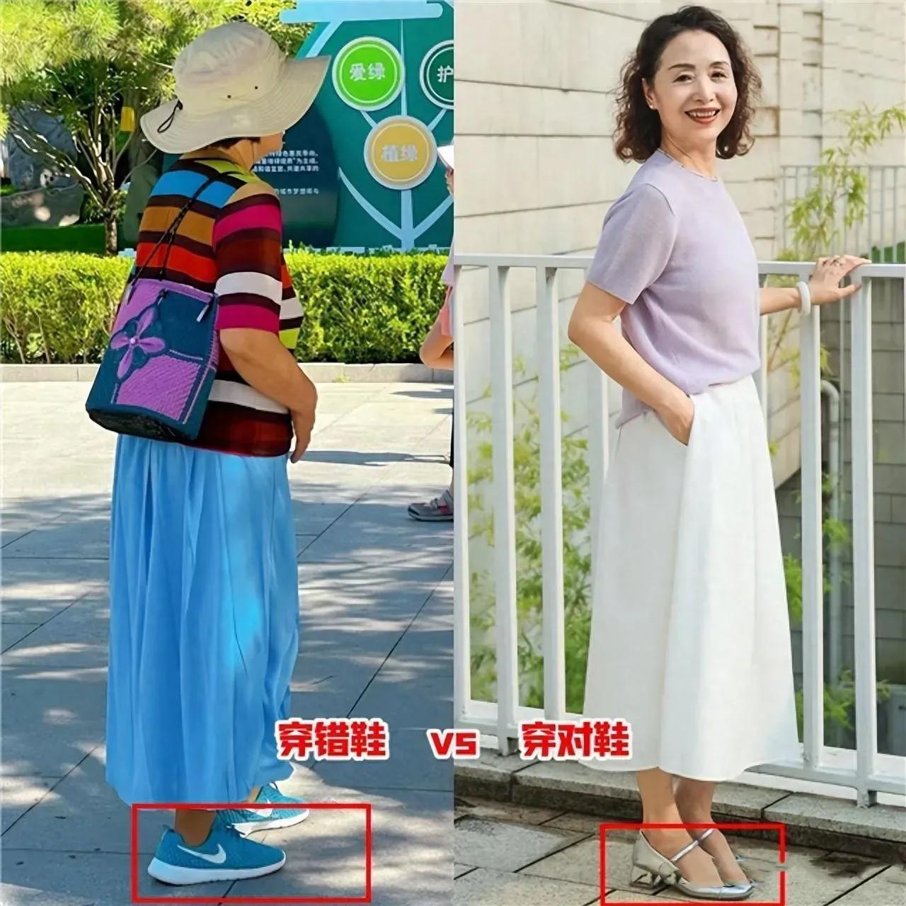 当然,年龄不同,选择的鞋子也有很大的区别,如果是中年女性,这时候你可能会选择保守的穿搭,但是选择的鞋子花色尽量不要过于老土,甚至是设计,也不要过时,要不然的话穿在脚上也会显得老气,我们应该选择设计的鞋子要简约,白色的平底鞋搭配裤子衬衫,这样的穿搭就会更优雅得体。