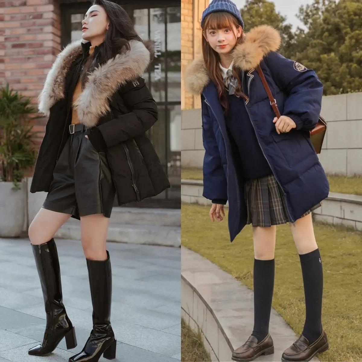 当然,如果平时你休息时间比较多,然后出门基本上是白天出太阳的时候,天气暖和是完全可以用下半身失踪的穿搭方法的,而且穿法不同,气质也不同,比如说用黑色羽绒服搭配上黑色的短裤,脚踩皮质的中筒靴,这样的穿衣造型成熟稳重。