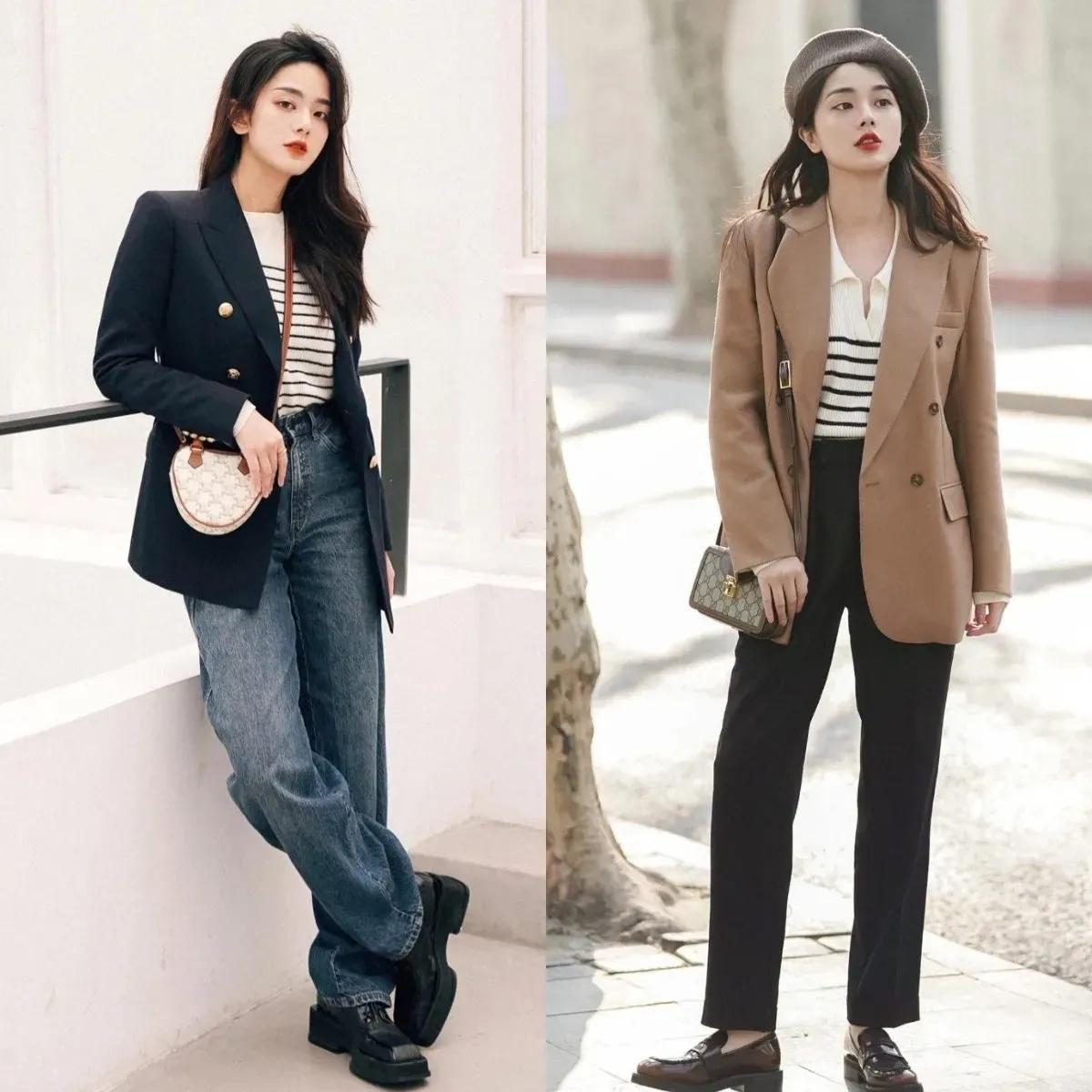 当然不管是穿衣打扮还是选择鞋子,都是为了更好的优化我们的身材,比如说选择短款的小香风外套,搭配上牛仔裤就为了更好的提升腰线,穿粗跟的高跟鞋子就为了增加下半身腿型的线条,让整个人身材形成三七分,这样的话,看起来才会更加洋气,好看迷人